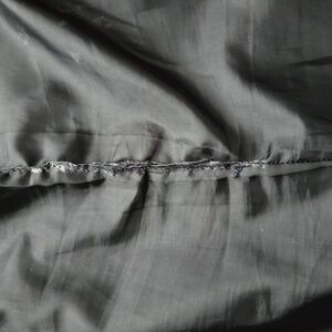 The buttons are concealed by the front ruffle. Pockets are hidden at the side seams. (I repaired the lining middle seam - see the photo).