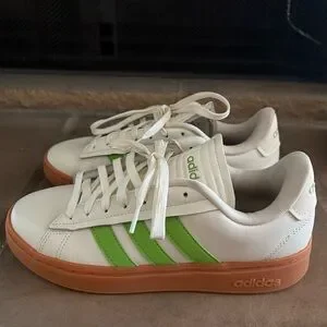 Adidas Womens Grand Court Alpha Lace Up Sneakers Casual Off White Green Size 8.5