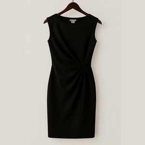 This elegant black dress by Diane Von Furstenberg showcases a ruched design that beautifully enhances its sheath silhouette. The sleeveless cut and bateau neckline make it perfect for cocktail parties or professional settings. Its midi length adds a sophisticated touch, ensuring a timeless and chic look.