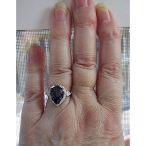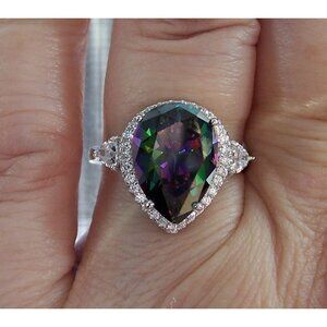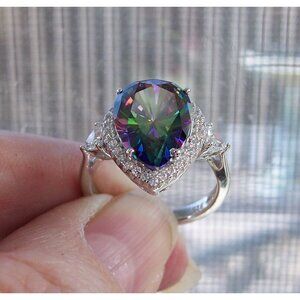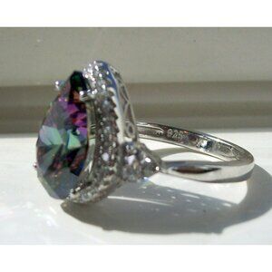 NWOT 925 solid Sterling Silver Ring, sizes 7 and 8. This glamourous women's fashion Ring has a 12 x 14 (mm), 5.41 carat simulated Mystic Rainbow Topaz CZ in the center, with clear round trillion cut CZ's around it. It's 16.0 (mm) wide at it's widest point, is stamped 925 and has a Rhodium finish for greater shine and durability. If you don't see the size you want please contact me and I will see if I can order one for you, this ring comes in sizes 6-12, no half sizes. Comes from a smoke free home.