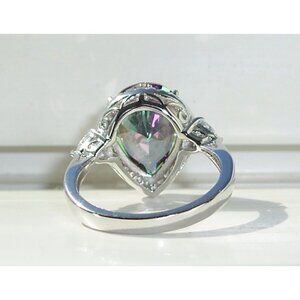 925 Sterling Silver Simulated Mystic Rainbow Topaz CZ Pear Cut Halo Ring