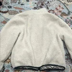 Cozy sherpa fleece jacket featuring a stylish black pocket. Fully lined with silky material. Perfect for chilly days.