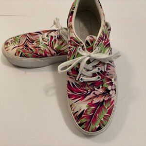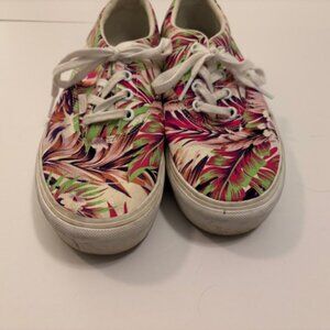 Vans Off the Wall Womens Classic Platform Purple Green Leaf 7.5