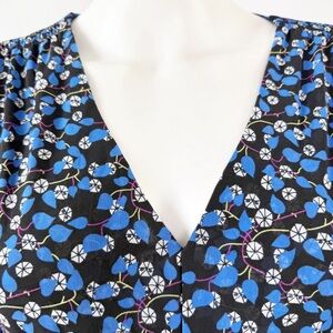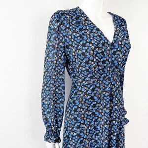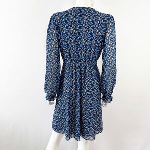 Cabi Blue Floral Mesh Dress Size M Long Sleeve V-Neck Casual A-Line Classic