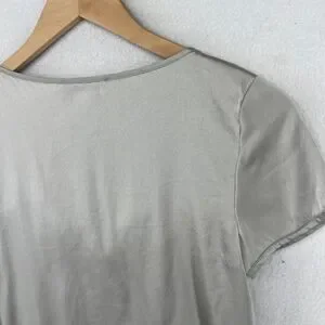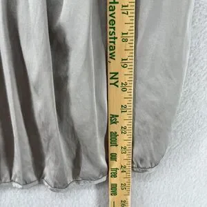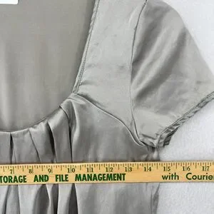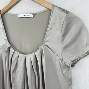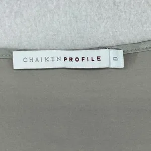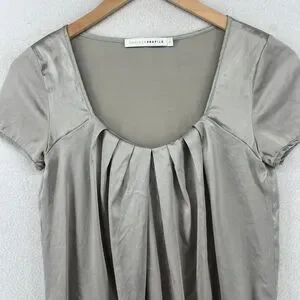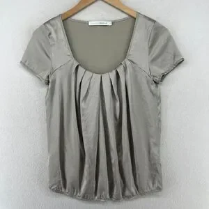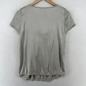CHAIKEN PROFILE Top 0 XS Stretch Silk Satin Pleated Blouse Cap Sleeve Gray Silver USA