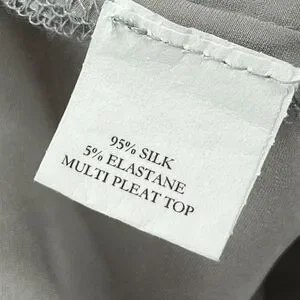 CHAIKEN PROFILE Top 0 XS Stretch Silk Satin Pleated Cap Sleeve Gray Silver USA