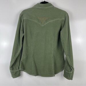 Roper Green Corduroy Embroidered Button Up Long Sleeve Shirt in size medium women's
