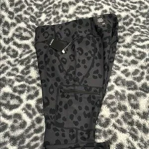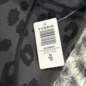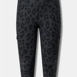 Torrid happy camper performance core capri active legging with cargo pocket, size 00 or medium. Black and gray leopard print. Brand new with tags!
