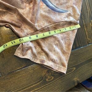 Brown t-shirt featuring a striking bull skull graphic. Unique and bold design.