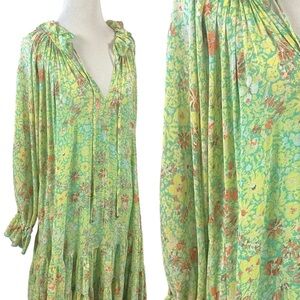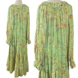 Free People Feeling Groovy Midi Maxi Dress Size Small NWT 70s Chartreuse Floral