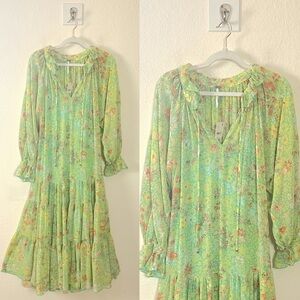 Free People Feeling Groovy Midi Dress Size Small NWT 70s Chartreuse Floral