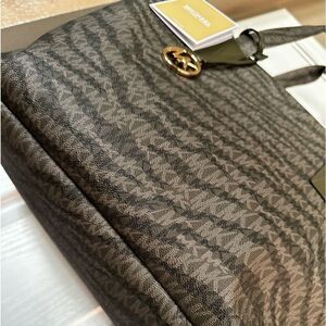 Michael KORS Signature Animal Print Tote Bag in Olive XL NWT retail $298