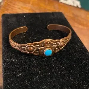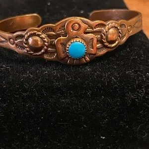 Vintage Bell Trading Child or Baby Copper Turquoise Thunderbird cuff Bracelet