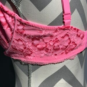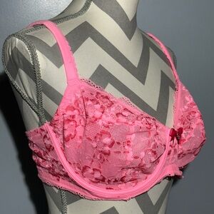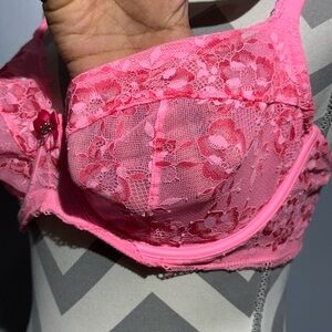 Elegant pink lace bra with a delicate design, perfect for adding a touch of femininity to your wardrobe.