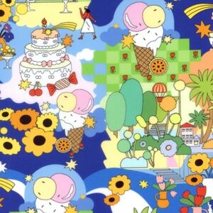 We enter the fantastical world of graphic artist, Aki Jiang. A tapestry of quirky motifs including giant, mouth-wateringly delicious ice creams and candy, larger-than-life lipsticks, and stylised blooms, are woven together with bold shapes and geometric patterns in this surreal, imaginary landscape. Celebrating her iconic simplified style, we were keen for the artist to run away with her imagination and create a whimsical conversational design.