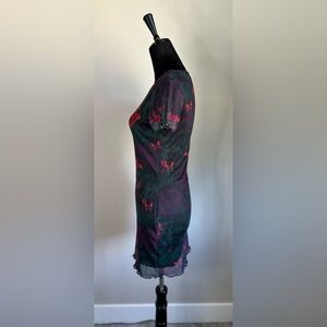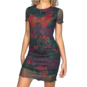 Women's Cut Butterfly Y2K Short Sleeve Crew Neck Short Bodycon Mesh Dress Size M