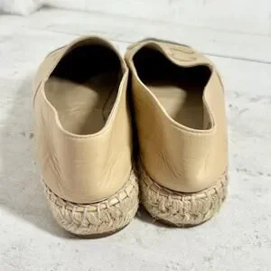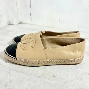 Chanel Lambskin Leather Cap Toe Espadrilles Loafer Flat Beige/Black Women's 37