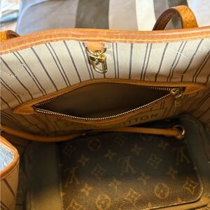Stylish Louis Vuitton tote bag with classic monogram design. Features brown and tan colors.