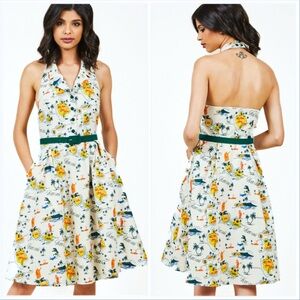 Modcloth Hawaii Print "Genuine Genius Halter Shirtdress in Island”