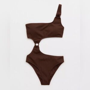 NWT Aerie Wide Ribbed Cut Out One Shoulder Ring One Piece Swimsuit