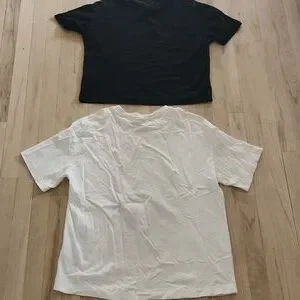 The white t-shirt has been barely worn and shows no signs of wear. The black shirt has some signs of wear but no defects.
