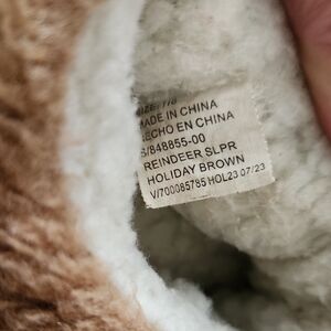 Adorable plush slippers with a deer design. Features brown and white colors. Purchased from Gap. Worn but still in good condition, size 7/8