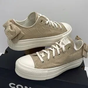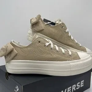 Converse Women's Tan Lace Platforms A10246C CTAS LIFT OX NUTTY GRANOLA/EGRET/LIG