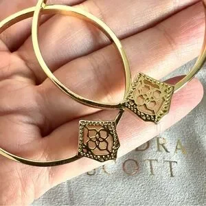 Elegant Kendra Scott gold hoops with beautiful rose quartz detail are perfect for any occasion! Includes KS jewelry pouch.