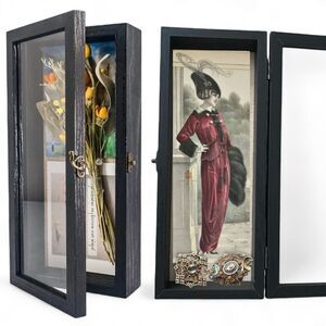 GraduatePro Rustic Black Shadow Box Frame Linen Back Hinged Glass Window