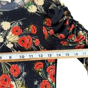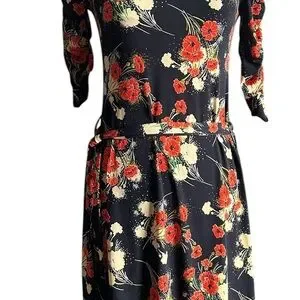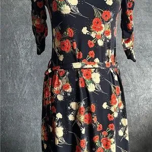 Charming dress featuring a vibrant floral pattern. Perfect for any occasion. PREOWNED IN GOOD CONDITION/SEE PHOTOS FOR DETAILS
