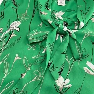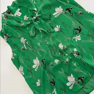 Elevate your wardrobe with this elegant floral green sleeveless top. Perfect for any occasion, this top offers a stylish and comfortable fit. Size XL. Gently worn. No rips or stains. Tie neck and button down front.