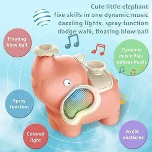 Elephant Blowing Ball Walking Car Toys with Music Light Baby Crawling Toys Tummy Time Interactive Toddler Infant Toy Automatically Avoid Obstacles for Boys Girls (Pink)