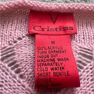 Charming pink M sweater top with a unique scallop pattern. Perfect for adding a touch of style to any outfit.