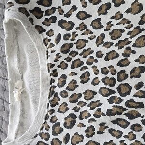 Stylish animal print sweatshirt with a cozy over-sized fit. Perfect for casual outings to look great with a relaxed vibe. Notched edge distressing on neck and waist band