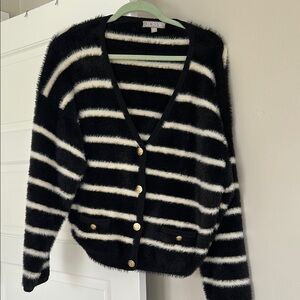Stay cozy and stylish with this J. Crew sweater. Featuring a chic black and white striped design, it's perfect for any occasion. Enjoy the soft, comfortable fit and classic look.
