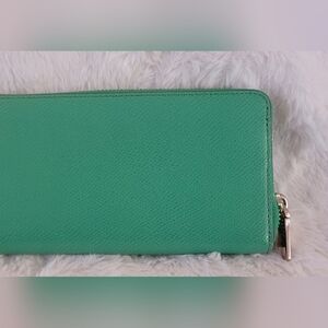 Coach Green Leather Wallet with Zip-Around Closure