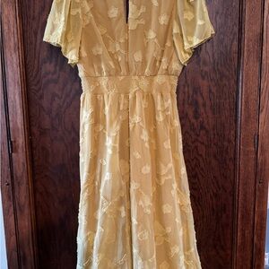 This elegant yellow floral dress is perfect for any occasion. Its delicate design and vibrant color make it a standout piece in your wardrobe. Perfect for spring engagements. New with Tags.
