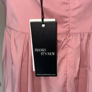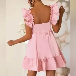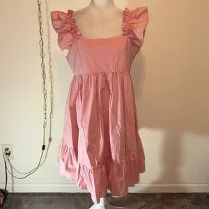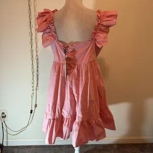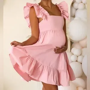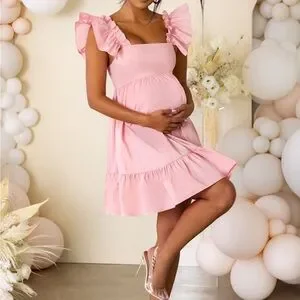 New with tags pink mini dress by Club L, size 10. Maternity dress. Charming pink maternity dress with ruffle sleeves. Zips up in the back. About 18” across the chest and 35.5” from top to bottom.