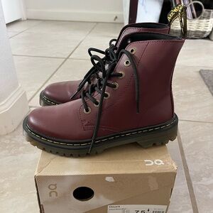 Step out in style with these Dr. Martens women's boots in a rich burgundy color. Perfect for adding a bold touch to any outfit.