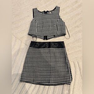 Worn once. Great condition. Faux leather and metal detailing on waist of mini skirt and top.