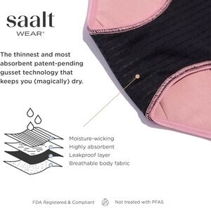 Breathable confidence. Your go-to, full coverage pair that will go the distance. Best for regular flow days, light bladder leaks, everyday protection, or as a worry-free backup to a cup, disc, or tampon. Body fabric made from 95% soft and breathable cotton with 5% elastane for a hint of stretch. Biodegradable natural cotton fiber and Standard 100 OEKO-TEX® Certified. Absorbent polyester gusset.