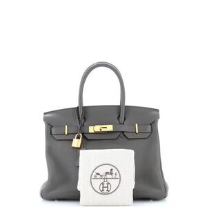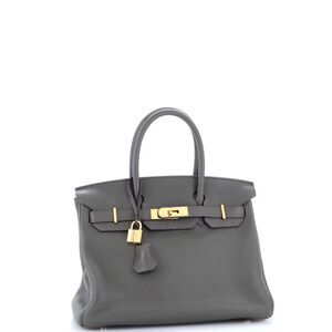 Hermes Birkin Handbag Vert Olive Clemence with Gold Hardware 30 Green