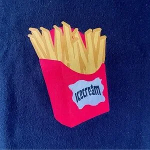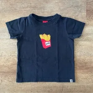Icecream Billionaire Boys Club Toddler Black T-Shirt with Fries graphic in size 4T. Showing some signs of use from wear and wash, but no cracks on the graphic.