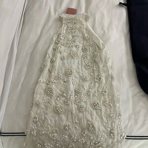 This elegant white floral dress is perfect for any special occasion. The intricate floral design adds a touch of sophistication and charm. Purchased for my wedding welcome party! Would love another bride to enjoy her :)