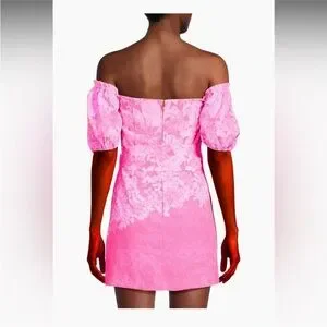 Chic off-shoulder romper. Vibrant pink floral pattern. Perfect for summer outings.