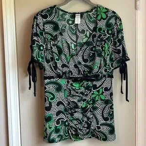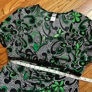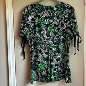 Studio 1940 Green Floral & Polka Dot Polyester Empire Waist Women’s Blouse Sz L