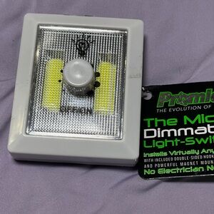 Compact micro dimmable light switch that used batteries not include. Ideal for small spaces.New never used.