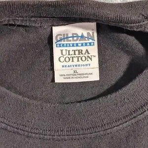 Mens tee. Black, 100% cotton. Never worn, no tags. Gildan Heavyweight preshrunk.