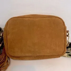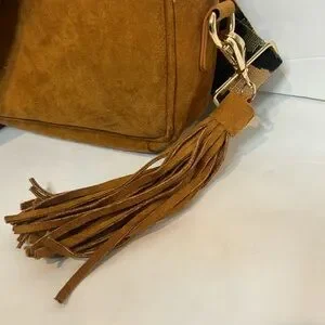 removable camel tan faux suede tassel
