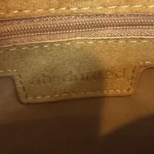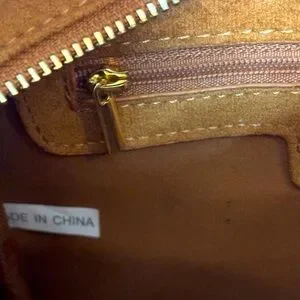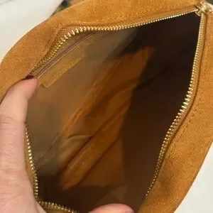 camel tan faux suede rectangular box bag with zip top